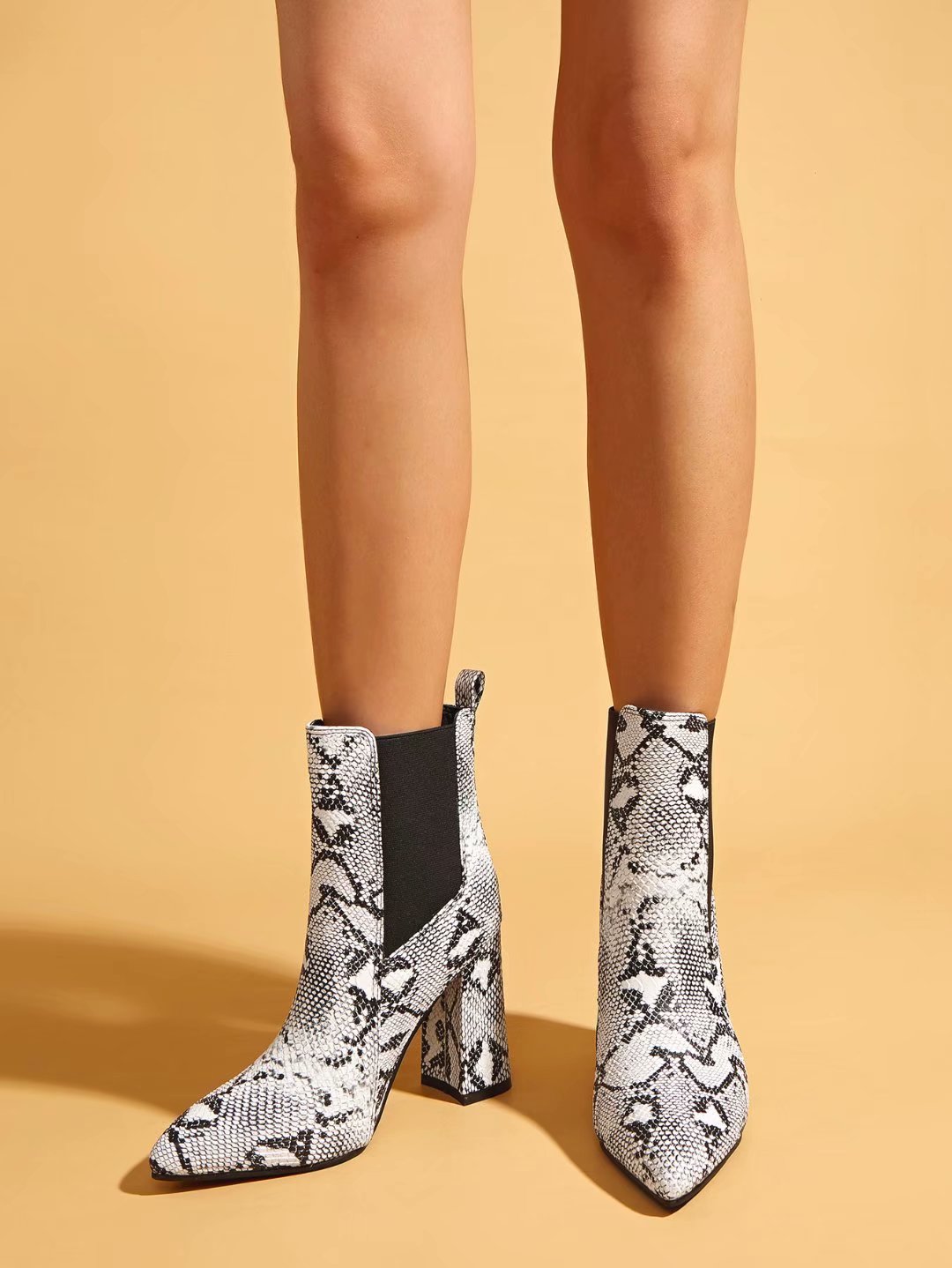 Women's Boots Snake Pattern Sleeve Thick Heel High Heel Pointed Toe