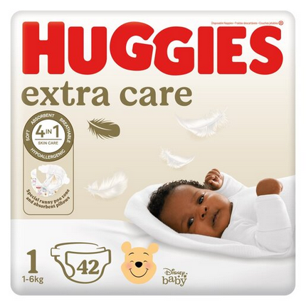 Huggies Extra Care Size 1 New Baby Up To 6kg Value Pack - 42 Nappies