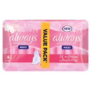 Always Maxi Cotton Soft Long Sanitary Pads Value Pack 18 Pack