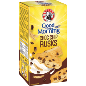 Start your day off right with Bakers Good Morning Chocolate Chip Rusks. Made with real chocolate chips, these rusks are packed with indulgent flavor and will give you the energy you need to tackle the day ahead. Satisfy your sweet tooth while getting a delicious breakfast in one convenient package. Each 450g pack is perfect for sharing with family and friends.
