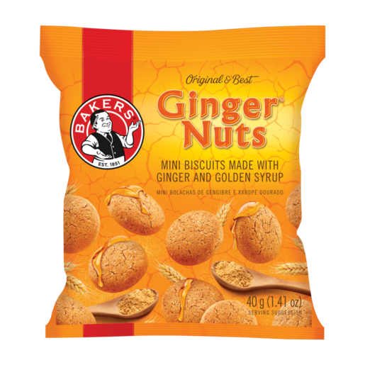 Experience the perfect balance of spice and sweetness with Bakers Mini Ginger Nuts Biscuits. Each 40g pack contains bite-sized biscuits that are made with real ginger and have a satisfying crunch. Enjoy these delicious treats as a snack or pair them with your favorite hot beverage for a cozy treat.