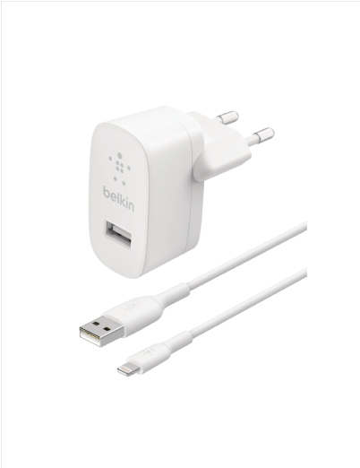 Expertly charge your devices with the Belkin USB-A Wall Charger + Lightning Cable (12W). This powerful charger provides 12 watts of power to quickly and efficiently charge your devices. The included Lightning cable ensures a secure and stable connection for confident charging. Say goodbye to slow charging and hello to convenience with Belkin.