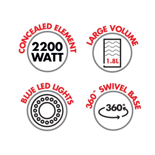 With its large 1.8L capacity, 360° swivel base, 2200W concealed heat element and stylish stainless steel features, this Bennett Read Grande Kettle is the perfect combination of elegance, power and convenience. Its modern design features a full glass body and bright blue interior LED lights when in boiling mode. Not to mention the one-touch auto-lid that opens to a full 90° for effortless cleaning and filling. Added features like the safety-lock lid, auto shut-off and boil dry protection were also designed with your safety top of mind.