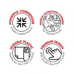 Suck out the air, seal in the freshness and preserve the flavours and nutrients of your food with just one touch of a button! The seal solution.