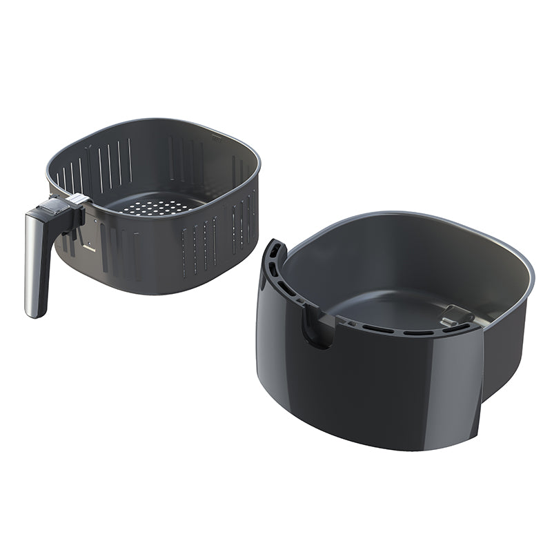 - Extra-large 8L non-stick drawer & 7.2L detachable basket with safety release button