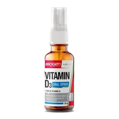 Biogen's Vitamin D3 Spray offers a convenient and easily absorbed way to improve your body's Vitamin D3 levels. The 30ml bottle contains 10,000 IU of Vitamin D3, providing more than 250% of your daily Vitamin D3 needs. This spray is an optimal source of absorption for those who are looking to increase their Vitamin D3 levels.