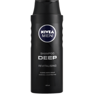 Nivea Men Deep Shampoo cleanses deeply and revitalises the scalp. The formula with Electrolytes & Black Carbon binds and removes excess grease and styling residues while providing revitalisation and long-lasting fresh feeling on the scalp.