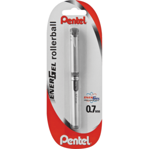 Retractable black ballpoint pen 0.7mm ball & soft grip.