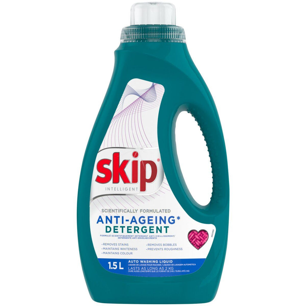 Introducing the all new Skip Auto Washing Liquid with fibre care technology. It penetrates deep into the heart of fibres, enhancing colour, removing unwanted bobbles and strengthening each individual strand.