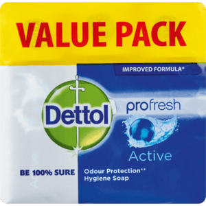 The New Dettol Profresh Active Soap, with improved fragrance, provides Dettol’s trusted germ protection and assured odour protection. It helps leave skin feeling healthy and fresh.