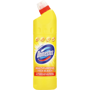 Domestos' Lemon Fresh Multipurpose Thick Bleach is an effective cleaning solution for any surface. With its thick Formula, it kills 99.9% of germs and bacteria, leaving a pleasing lemon scent. The 750ml bottle is perfect for use at home or in the workplace.