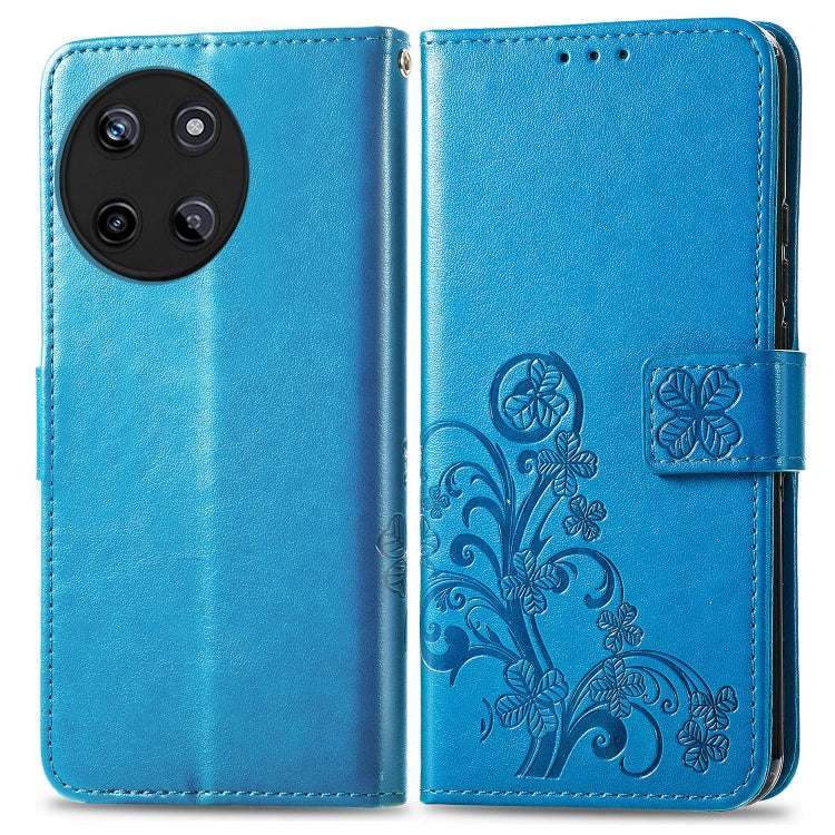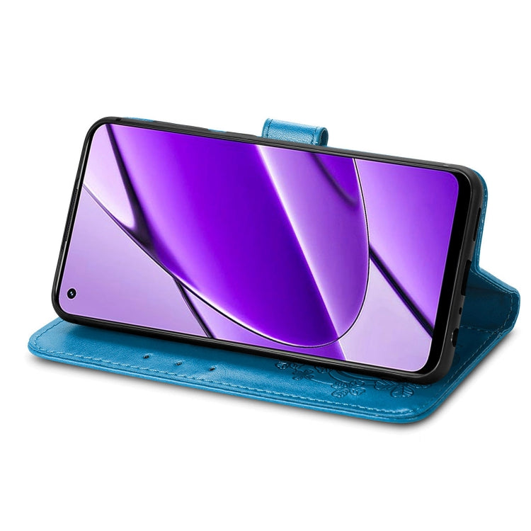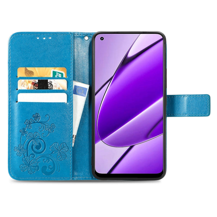 For Realme 11 4G Global Four-leaf Clasp Embossed Buckle Leather Phone Case(Blue)