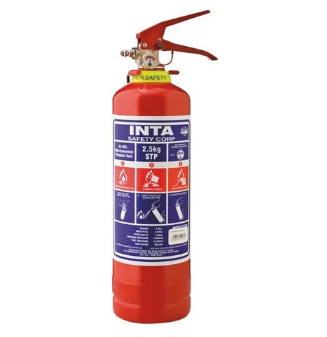 The Inta Safety Fire Extinguisher DCP (2.5kg) provides protection against common flammable liquids, solids, and electrical fires. This fire extinguisher is designed with an easy-to-read pressure gauge, reliable operation, and a corrosion-resistant valve assembly. Easy to use and store, this fire extinguisher is suitable for residential, commercial, and industrial use.