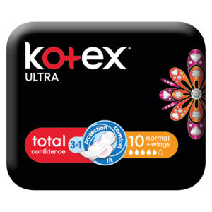 Kotex Ultra Total Confidence 3-In-1 Normal Sanitary Pads With Wings 10 Pack