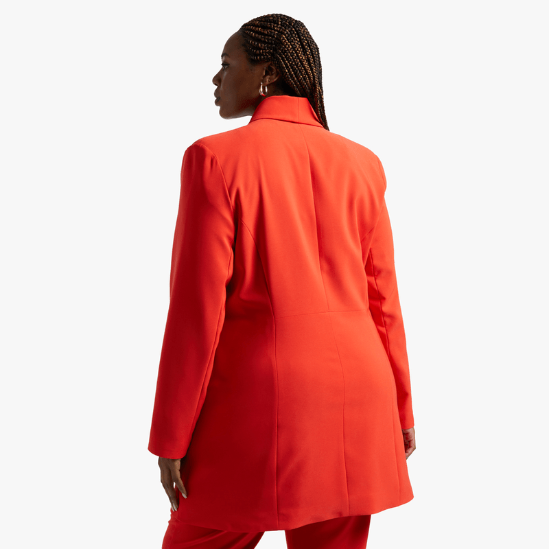 This Longer Length Shawl Collar Blazer pulls your fit together with its cinched-in waist and chic longer length. Pair it with smart shorts and heels for an on-trend look or wear it with pants or a long dress for a more classic office-appropriate outfit.