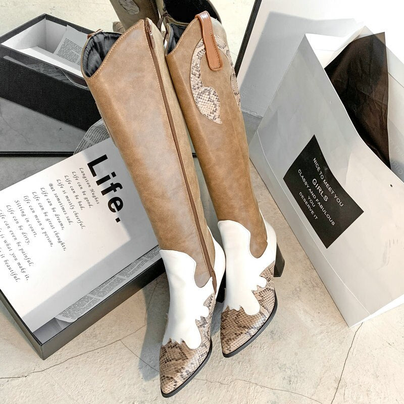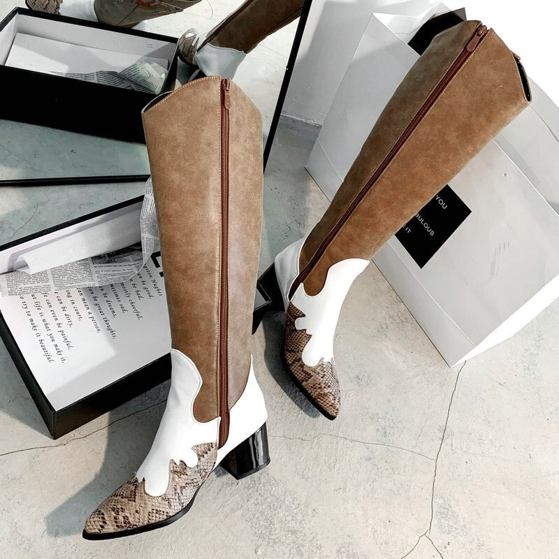 Mixed Colors Women Shoes PU Leather Knee High Boots Pointed Toe
