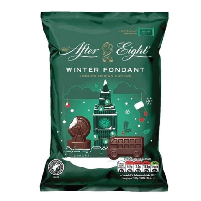 Indulge in Nestle After Eight Christmas shapes. Made with rich dark chocolate and refreshing peppermint cream, these 57g treats are perfect for the holiday season. The perfect combination of smooth and minty flavors, these shapes make for a delightful treat or gift.