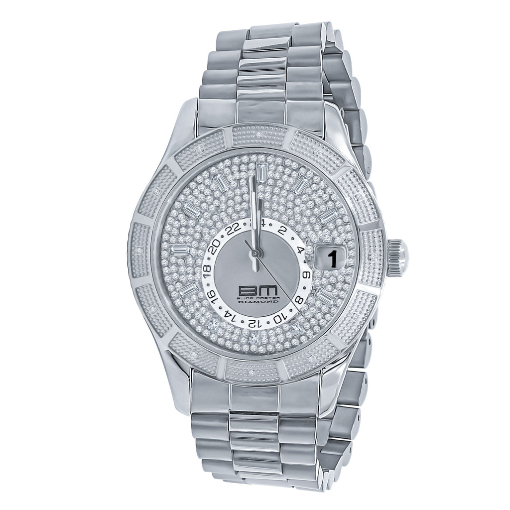 NIGHT EAGLE; This stylish watch being water-repellent highlights an eminent fancy dial accompanied by date-displayer and buffed metal strap. The unique bezel with twelve diamonds on it give this timer a grand finish. This chic would be your perfect partner in any of the night-outs.