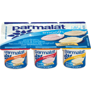 Parmalat Smooth Medium Fat Apricot StrawberryBanana Multipack Yoghurt 6 x 100g