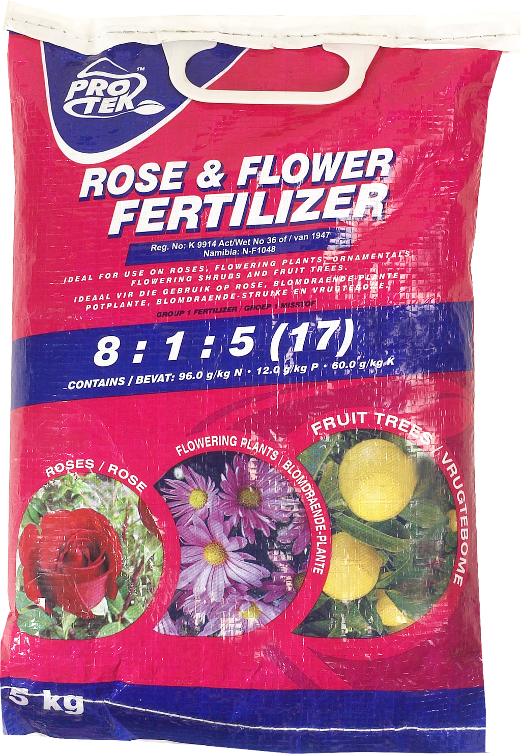 • A chemical granular fertiliser. • N 8 : P 1 : K 5 (17%). • Specially formulated for roses, seedlings and flower bearing plants.