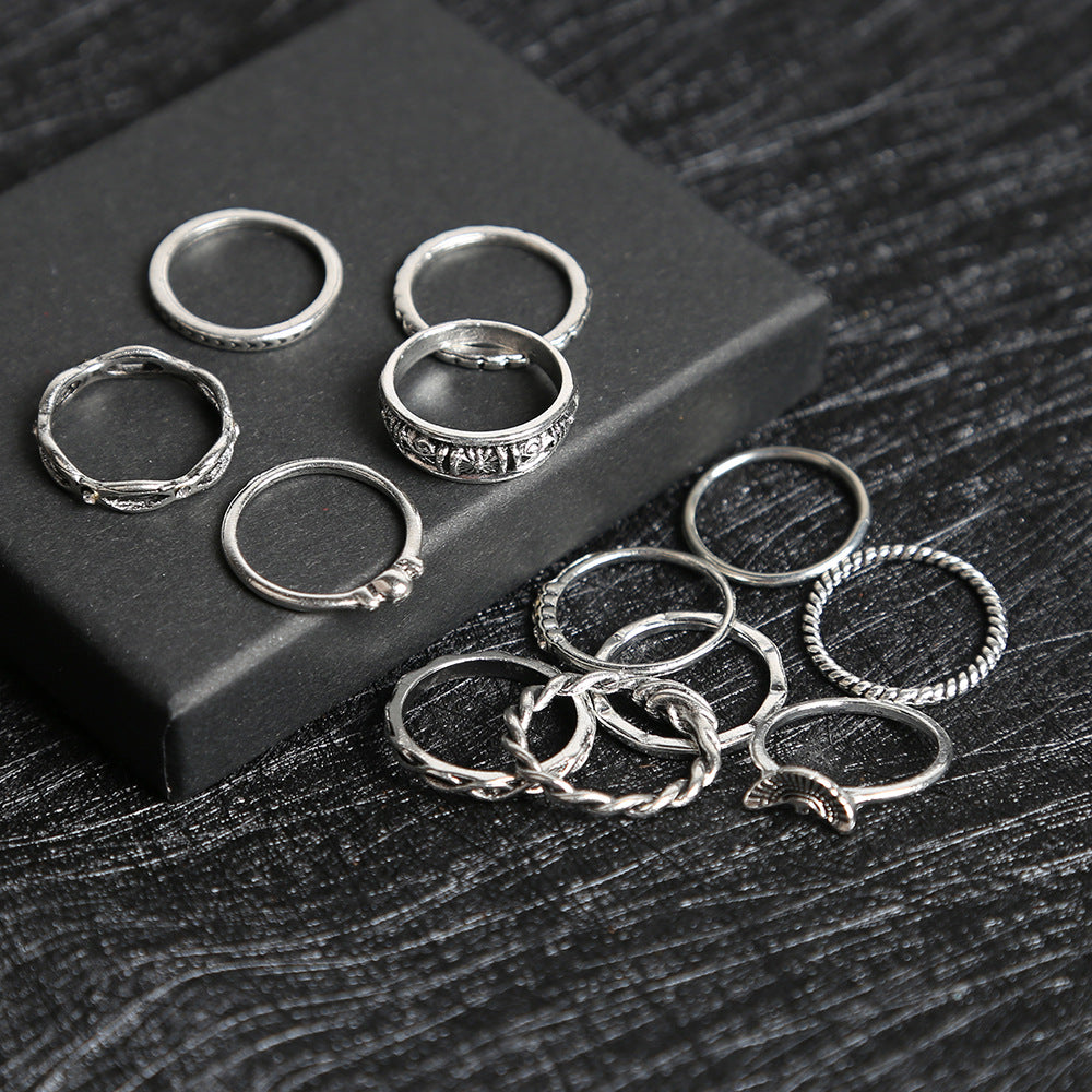 Vintage Diamond Ring Set Twelve Combination Eagle Winding Knotted Carved 12 Piece Set Ring