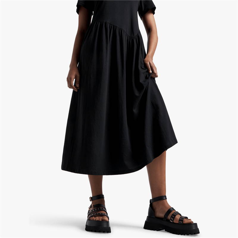 We're obsessin' over this dress. Featuring a stretch fabric, 2 front slits with frill details and side ruching. Pair with heels and you'll be as stunnin' as ever!