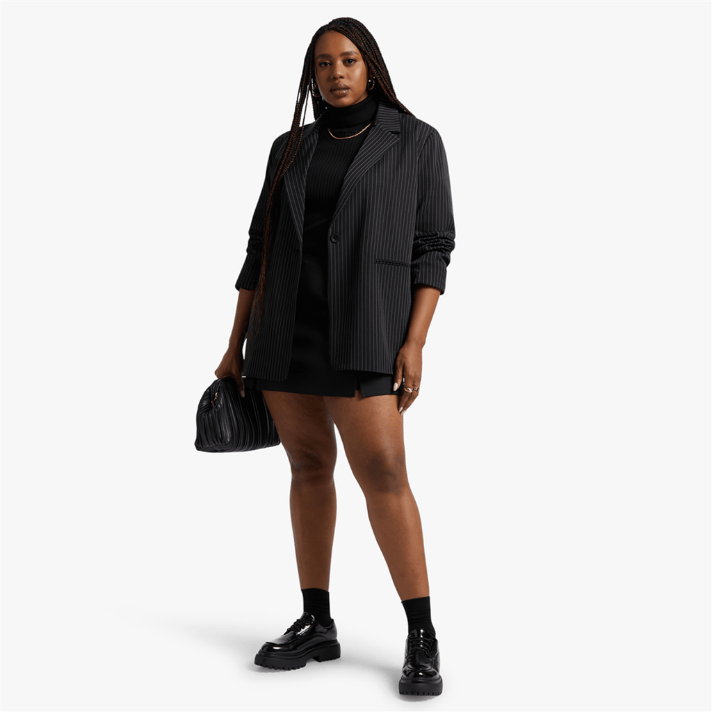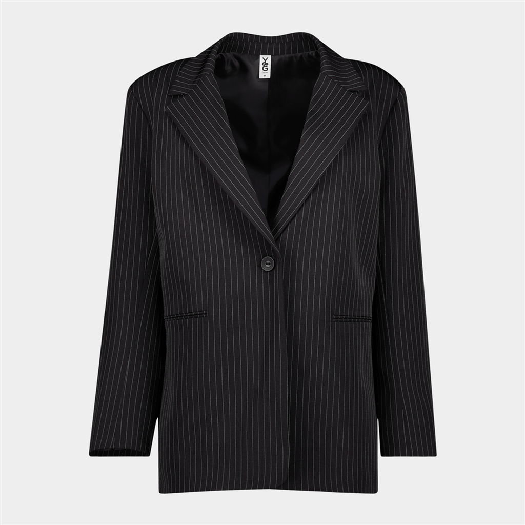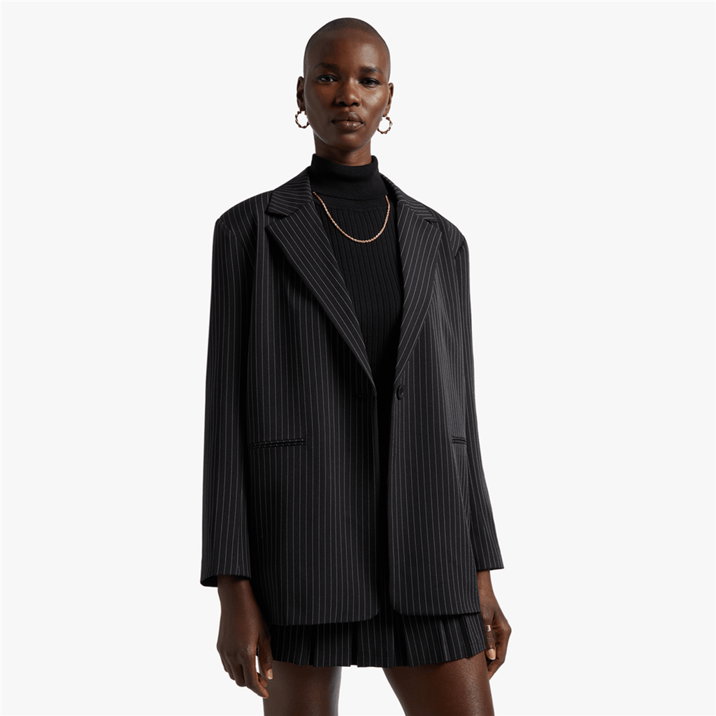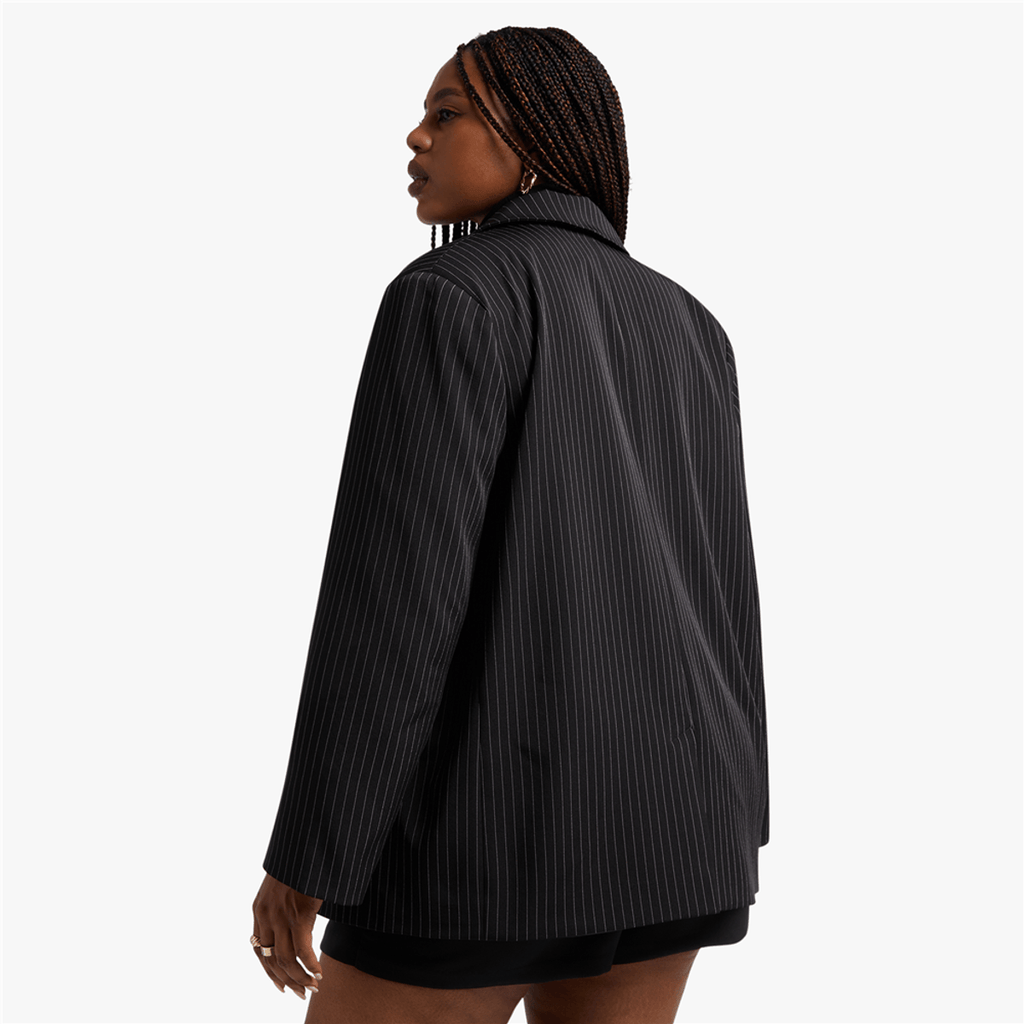 Layer your look with this Y&G Pinstripe Boyfriend Blazer. Pair it with on-trend cargo pants, a fitted crop top or bralette and strappy high heels for a banger fit.